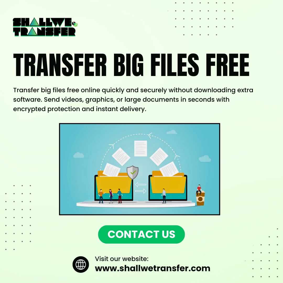 Transfer big files free online quickly and securely without downloading extra software. Send videos, graphics, or large documents in seconds with encrypted protection and instant delivery. Enjoy smooth sharing, reliable performance, and effortless collaboration. No registration, no size barriers—just simple file transfers with Shall We Transfer.
